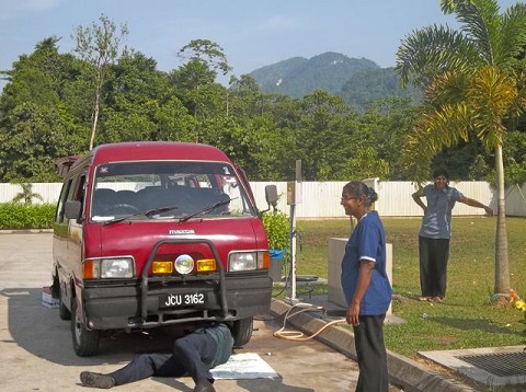 (Pastor Yesu working on our 1991 Mazda Red Sauna at a rest stop).