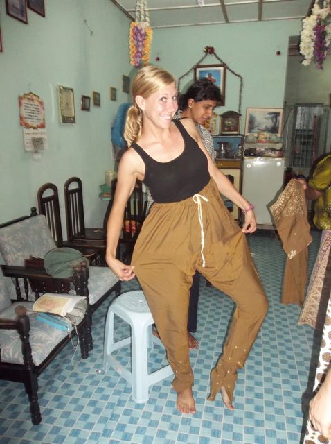 (Just last night I was asked to try on these pants at a home visit. Why Indian pants are size XL in the waist and XS in the ankles is beyond me).
