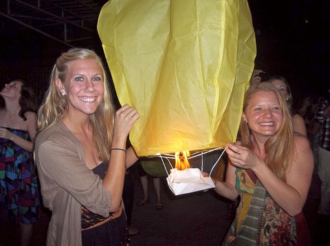 Releasing lanterns into the Indian sky at our squad's final banquet with one of my closest friends Suzanne.