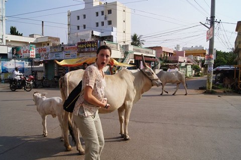 Cows EVERYWHERE, and a beautiful woman peers through the SCH gate.