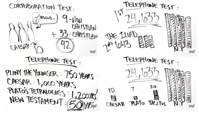 So if these other four works of history are accepted as factual, why is it that the New Testament with the shortest time frame between actual occurrence and the first written copies and the largest number of copies by over ten times, is questioned?