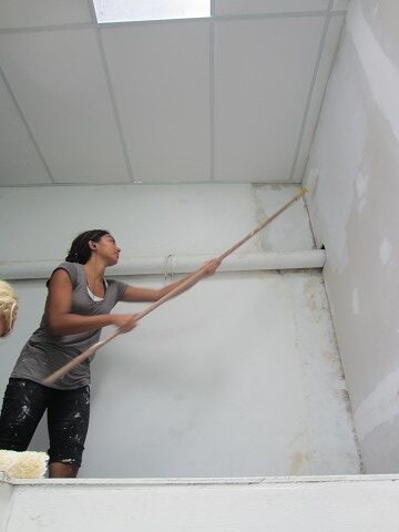 But what do you do with a pan full of paint, and no more walls left?