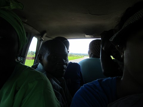 We flatbed trucked it to Santhe, a town where we could pick up a mini van to the hospital. Only thing is that there are NO vans that run towards the clinic in the morning. So instead we ended up jamming ourselves and 6 other people in a 5 passenger car…. That’s the back door…open..