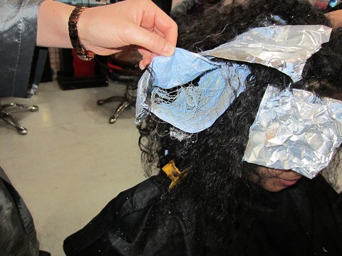 yet, the bleach that they put in my hair to try to put the purple in.