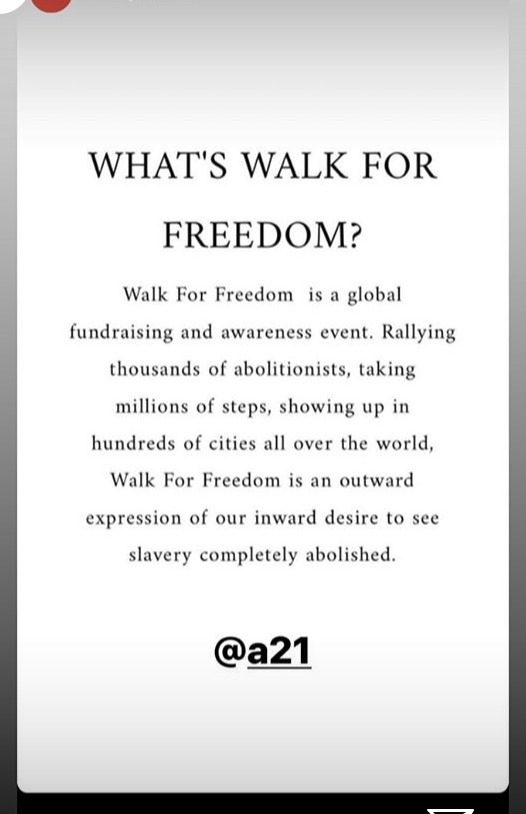 A21 is now globally known in many countries joining together to walk for freedom. Yesterday over 30 countries joined together on the same day in many different cities! That is just a few of the ways that we come together as humans. If you didn’t join in one this year there is many opportunities to join one in future be sure to set aside October 20th and walk for freedom in your city.