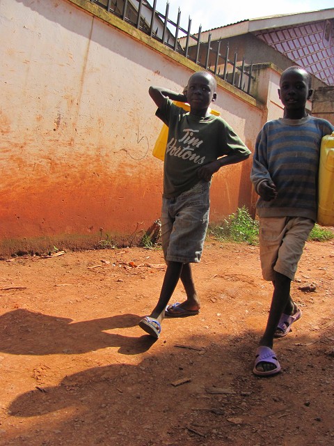 The boys carrying water in their village, gotta love the Tim Horton’s shirt!