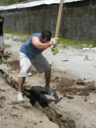 Levi is building a large house for missionaries to rest in as they are here in Guatemala or coming off the field in need of rest. He is also developing his workshop where he is building the panels for the houses. We are beyond blessed to be the foundation of this undertaking. Yesterday nine of us spent six hours digging a ditch. This ditch will actually allow electrisity and water to be run to the missionary house! It sounds small but we believe it is huge! If we were not here Levi would have to do it on his own, which would take weeks. Because of our help Levi can focus on other tasks and this gets his ministry up and functioning so much sooner. Yesterdays work was in the top five hardest days of labor i have ever had! The ground we were digging up had a four to eight inch layer of limestone on the top. Once we penetrated the limestone wh had two inches of soft dirt proceded by bricks. We dug a ditch that was two feet deep one foot wide and around one hundred fifty feet long. It was intenes, but we did not give up or relent!