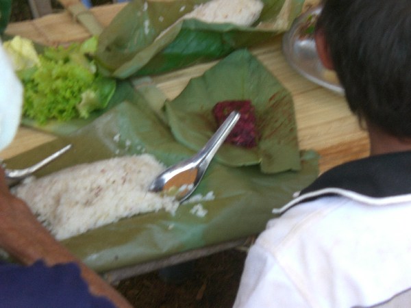 When we arrived in the hilltribe in the afternoon and had dinner. The next morning we had breakfast at one of the villagers houses. The breakfast was very normal; rice and pork, just what you would expect. The next day I expected a similar breakfast and boy was I wrong. Will and I went down for breakfast and I was amazed with what I saw for breakfast. The menu contained: