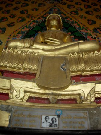 As well as giving offerings of flowers, candles and incense and wying the Buddha, you will see people putting small coins into a row of bowls. This is a way of ‘making merit’ by giving donations to the temple.