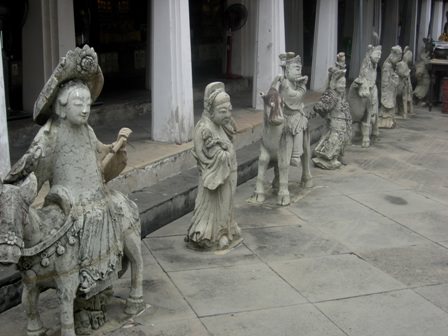 Small statues run along the perimeter of the courtyard. “What are these?” They’re depictions of the many different Chinese gods. Somewhere in the distance there is the faint hum of men chanting. The aroma of incense fills my nostrils and the candle wax runs down.