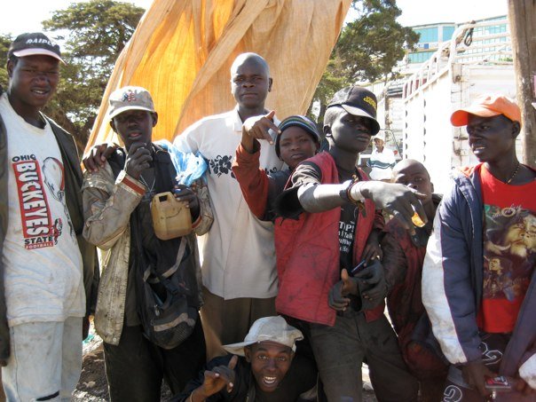 (This is Pastor William [middle, white shirt] with some of the street boys from the church)