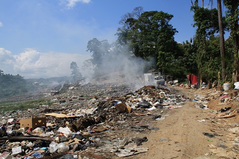 There are flies everywhere and vulture-like birds bounce through the mounds of trash picking whatever they can find to eat out of the muck. The heat on my face intensifies as I look to my right to see fire burning on top of the trash; ashes rain down from above. And not ten feet away, a young boy wearing a tattered pair of underwear and a tank top, probably four or five years of age, plays with his sister. Their mother looks on from the hut along the road.