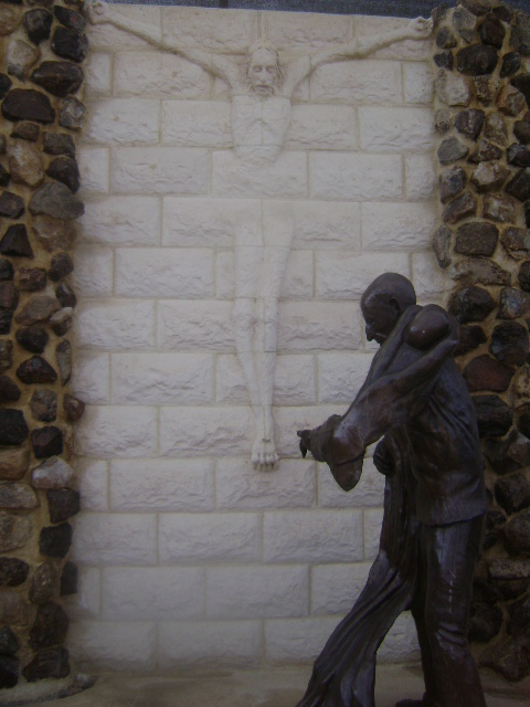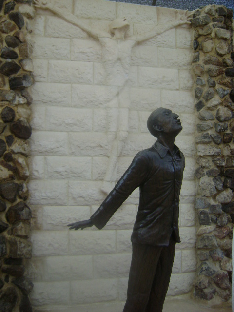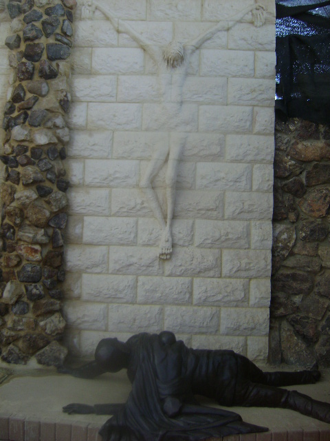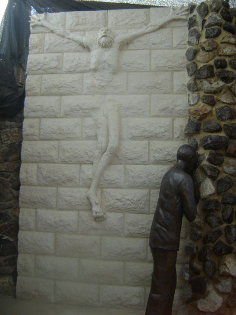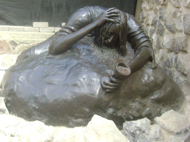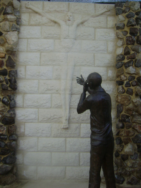 “Fountain of Tears”. It is a representation of the interaction between the seven last phrases of Jesus on the Cross and a Holocaust survivor.