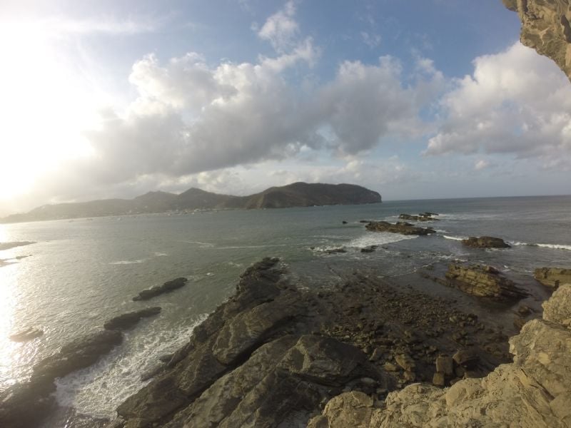 The pier is that platform-like thing in the top right corner. The guy at our hostel had seen me with a pole and had given me a handlining kit to borrow, called a carrete. He said to keep a good tight hold on it when a big fish latched on, since it was special.
