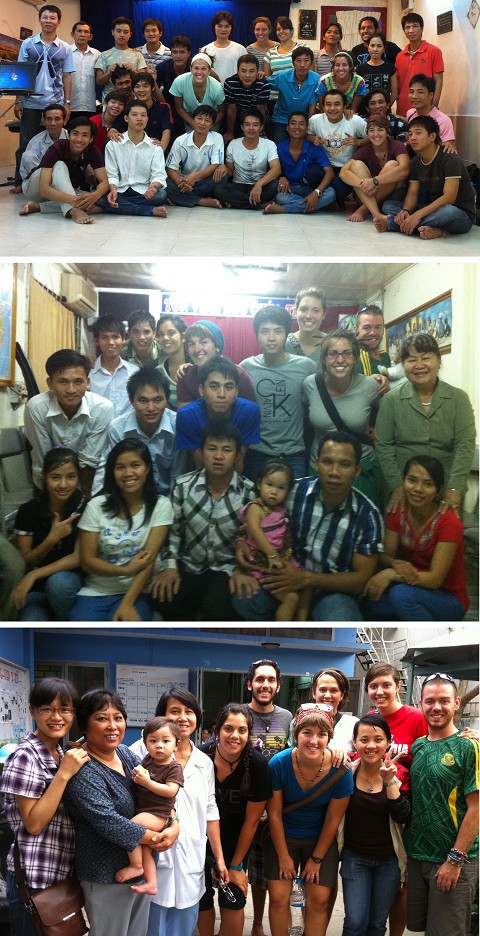 Top: The home for men who are struggling with alcohol and drug addictions. We've joined with them in worship, we've prayed over them and we've encouraged them, but I think they've done more for us. Their joy is contagious and they are fervently seeking after the Lord. Middle: The Theology students! These future preachers, teachers and Kingdom bringers are awesome! We sang songs with them, shared testimonies, played soccer and laughed a lot. Bottom: The older Vietnamese women in this photo have amazing hearts. They minister to young, unwed mothers by showing them the love of Christ and providing them with a safe place to raise their babies.