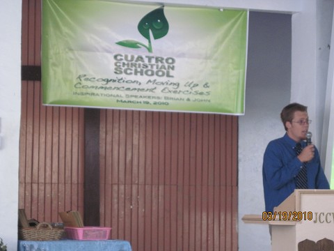 Somehow I ended up giving a graduation commencement address. If you look carefully on the banner, you can see my name as the “inspirational speaker.”