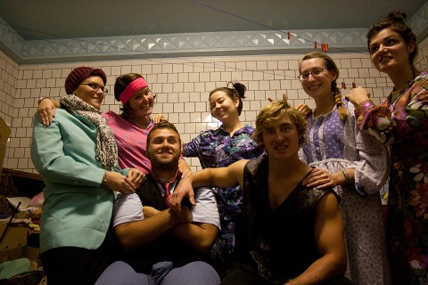 In Cornesti, our home for the month, we don't have internet or TV, so we have to find new and creative ways to entertain ourselves. Fortunately, the church we are ministering to has a wonderful room filled with piles of clothes donated from various places to take to needy families in the neighborhood. Our contact for the month, upon realizing that we were very ill-equipped for 40 degree weather, took us to this magical room and let us pick any clothes we wanted to borrow for the month.