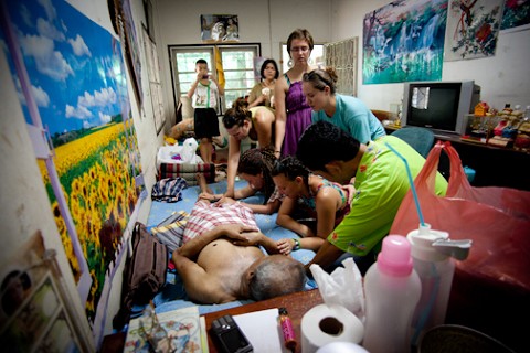 Ministry-wise, we’re working with a pastor and his wife, whom we affectionately call May and Pa (Mom and Dad). They’ve given up their apartment for us and are sleeping in the church downstairs. So far, we’ve visited some people who have needed prayer and cell groups to give encouragement and testimonies. Most Racers, when they think of Thailand, they think of going into the bars and ministering to people in the sex trafficking industry in places like Phuket, Bangkok and Chang Mai. And I was a little disappointed when I found out our team wouldn’t be doing that. But we’ve talked to Pa and he’s more than willing to let us go into bars and speak to prostitutes here in Chantaburi, which we haven’t done yet, but hopefully will before the end of the month.