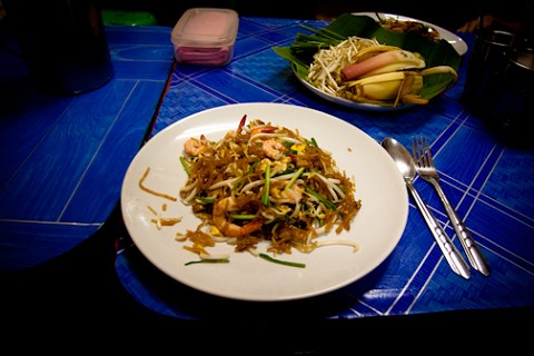 May doesn’t speak much English but is fluent in the universal language of food. She cooks for us most meals, making amazing Thai dishes and then trying to give us second and third helpings. We’ve been out to eat a few times and my dish of choice is of course, pad thai. Under a dollar and so very tasty.
