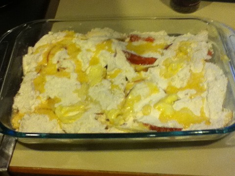 Step 4: Pour Cake Mix over Apples