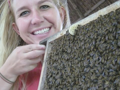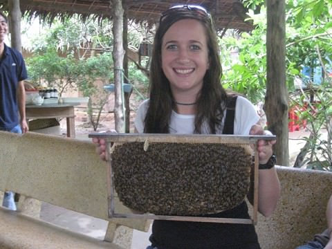 We tasted some honey tea, then held the bees!