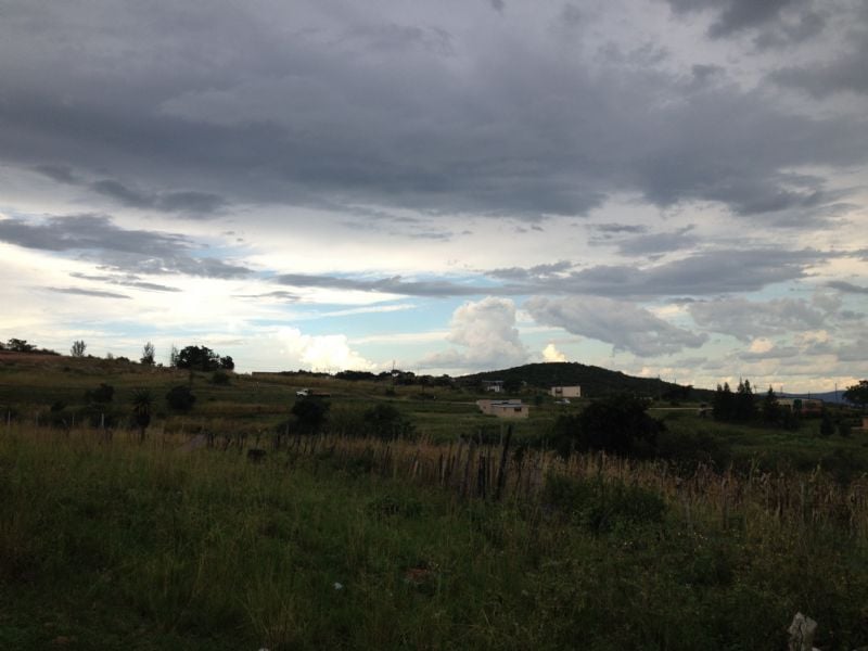 View of the ruins. The mountain in the back is the one we climbed.