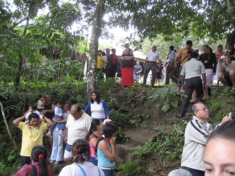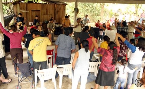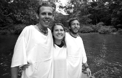 Last week when he stopped by to visit, he invited us to a baptism service that was going to be held at the river this weekend. Talia, Jon, and Eric have never been baptized and decided that this would be the perfect opportunity. We arrived at Palapa around 10:30 and were surprised to see that all the other teams from Squad A were there too! It was a fun unexpected reunion. Around noon a charter bus pulled up and a group of at least 100 people joined us. We found out that Samuel was also connected with a church in Villahermosa, and many from that church had come to join in the baptism service. They brought a full band and tons of energy. We had the most amazing worship service complete with tambourines, flags, and conga lines.