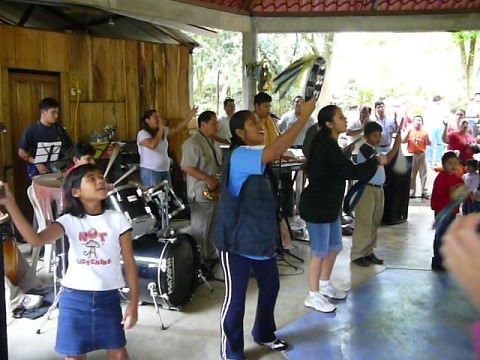 Last week when he stopped by to visit, he invited us to a baptism service that was going to be held at the river this weekend. Talia, Jon, and Eric have never been baptized and decided that this would be the perfect opportunity. We arrived at Palapa around 10:30 and were surprised to see that all the other teams from Squad A were there too! It was a fun unexpected reunion. Around noon a charter bus pulled up and a group of at least 100 people joined us. We found out that Samuel was also connected with a church in Villahermosa, and many from that church had come to join in the baptism service. They brought a full band and tons of energy. We had the most amazing worship service complete with tambourines, flags, and conga lines.