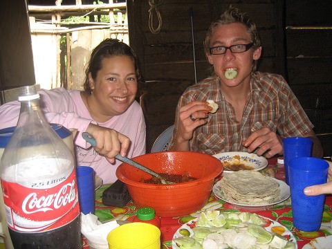 The meals they’ve served have been very good, but I can’t tell you how funny it is to sit there and talk about the sauce being bland, the very strange combinations of food, the chicken head staring back at us from the serving dish, the over abundance of tortillas on the table, Jamaican juice…again, or any number of things that have made our local Mexican dining so… unique.