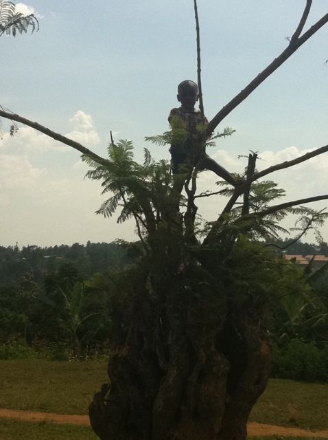 Pastor took us into town today to get some necessities like water and toilet paper. Technically we are living in Kigali, but we are living in the district of Gasabo on the very outskirts of town where we walk 25 minutes down a dirt road to get to the paved road where we take a bus for another 30-45 minutes to get to town. As we were walking down the dirt road, this little guy stood in the tree shouting “mzungu, mzungu” until we were out of earshot.