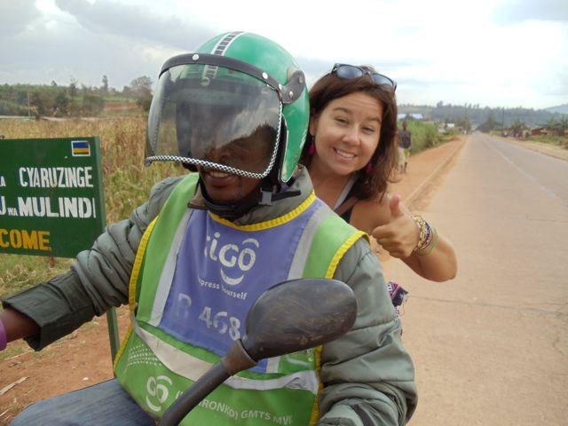 Hopping on the back of a moto is a common mode of transportation here in Rwanda (Don’t worry, mom, this picture was taken right before I put my helmet on).