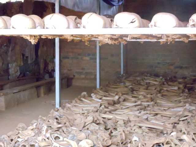 We went to a church where 5,000 people were massacred during the genocide. The church is now a memorial with some of the skulls, bones, and clothing still inside. Walking into the church with blood staining the walls and grenade holes through the stained glass windows made the genocide feel more real.
