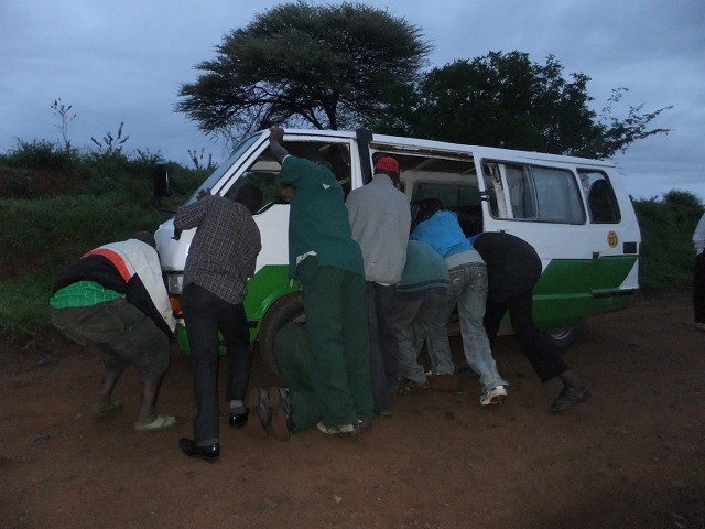 What do you do when your bus breaks down in the middle of nowhere on a Tanzanian road? You saw down some tree limbs and stick it in the engine to replace the broken axle of course! When that doesn’t work, you send everyone who was in the bus to ride standing up in the back of a construction truck.