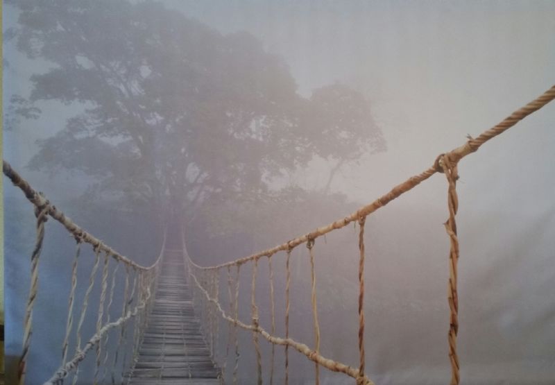 A rather large canvas picture stands proudly in the Dinning Room. The other night I found my eyes fixated on the image of a distressed rope bridge directed to look as if you are about to take a step to cross some sort of chasm towards a mysterious, foggy, and unknown forest. Even though I have passed the artwork many times before, never did I expect to see it so differently. It began to reflect how I was beginning to see my life into this coming year from moving to a new state all alone to preparing for the World Race.