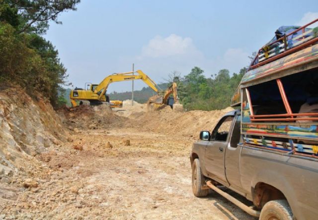 Woke up at 5:15 and were ready by 6:00… but the driver didn’t show up until 7:30. On our way to our next stop, our host who had come along because he spoke English and he said no one else did, decided to stop for a coffee break and let us see the waterfall that was there. Then on our way again. We were so grateful to have our host along because at our next stop, he asked around and found a driver to take us to our final destination. Last leg of the journey… At 11:00 we were on our songtao (a pick-up truck with benches in the back) and crossed the river on a ferry. Up mountains, across streams, over rickety bridges, around sharp corners, past a huge fire, and through construction, yes, the whole road was under construction, but at one point we had to wait as four excavators were digging up the road and had to put the dirt back for us to be able to continue driving! Throughout the whole ride, we were passing through several villages and stopped to pick up and drop off people. Finally around 3:15, being the only passengers left, we made it to our final destination! How exciting to reach the anticipated village! Oh to stretch our legs and look at ourselves. Did I mention that Laos has red dirt, and that the red dirt in the form of dust was over every inch of us, a nice fine layer of it! We were excited to find out that the guesthouse had showers – and towels and shampoo – a plus! (Much better than a baby wipe shower would’ve been.) We walked through the village to check it out. EVERYONE stared. Not many white people come up here. We found a small market, little shops and little fruit stands, gas stations in the old fashioned containers, a school and the lake behind the village. Stopped to eat at a restaurant (no menu, so whatever they said we said yes to). And then we split into pairs to walk around and pray for this village. Some of the things we prayed for, or words that we received were: that the Holy Spirit would prepare hearts so that the seed would fall on good soil, for His lordship over this place because Jesus already purchased this people with His blood and He has the rights to them, revival, new creation, children, parents, government and we prayed against fear. The song “You make beautiful things, You make beautiful things out of the dust” also came to mind. Before bed we had a time of prayer and worship together.
