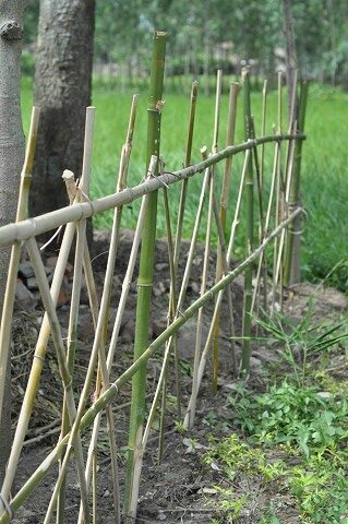 Building a fence out of bamboo we stripped from the Forrest.