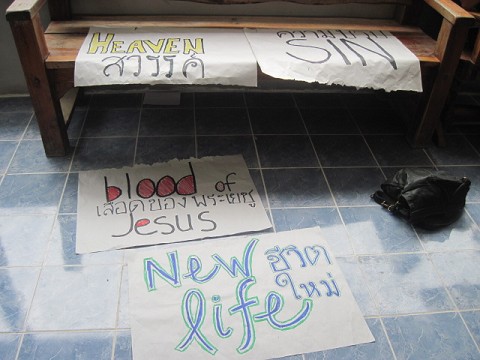 After we left mom and Katy, the missionary who lives here, were saying how amazing it was that they even let us talk about God. Also how they invited them back to speak and how some of the teachers gave mom their numbers so they could talk more about it. One of the teachers had been recently questioning Buddha and how you have to earn “merit” with him and that’s why people do nice things but how he could see in Christianity we do it because of love. Love for God and for people.