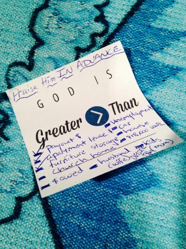 Update: Since taking this picture I have checked off church home,$ owed ,and unemployment. I am on my way to checking off $18,000 and being fully funded.