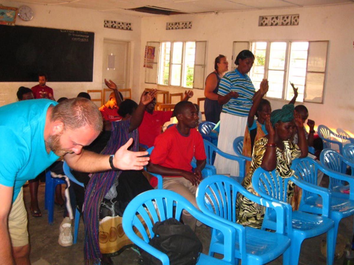 Crying as a man we just prayed for stands up without his cane and walks around freely.