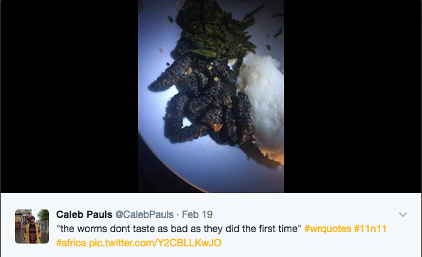 So when one day they served us worms again, my team looked at the food with sour faces, and I didn’t care.