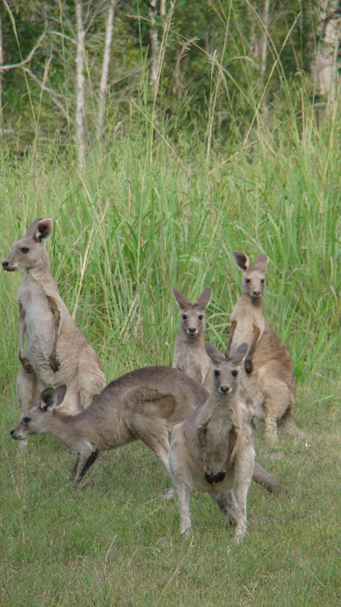 eaty but the Kangaroo�fs outside our windows make it bearable. We also saw a cute lil koala bear in the tree on the way to dinner tonight. When we arrived here I wasn�ft sure if we were tenting or not and the drive just laughed at me. He said there are way too many snakes and spiders out here to let you tent.