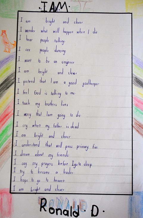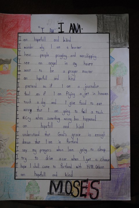 At first, I wasn’t really sure how this was going to work or if it would work at all. The first day, we had to do a lot of background work, briefly going over the writing process, different types of writing & writers, how we’d like to become writers, pretend we are real authors when its time to write, and then specifically, touched briefly on poetry. Then I walked them through the process of writing an “I AM” poem. I modeled each step, creating an example of what they were going to be doing. They seemed so excited to get started and were eager to learn but I couldn’t quite tell if they were totally getting it all. Regardless, it was time to move on.