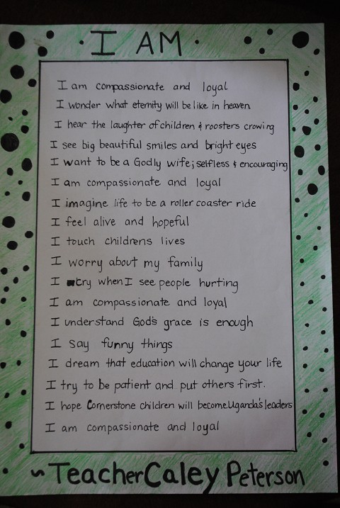 One of my favorite moments during our time in Budaka occurred one afternoon, after teaching a 3-day P5 (think 5th grade) English lesson. I’d been asked to teach some writing lessons and decided I was going to challenge them to try something outside the box. They have a very strict curriculum they must follow there, so to be invited to teach something outside of that & in a different form, felt like precious time that I wanted to make the most of for the students. I didn't want them to dictate something, working towards a write or wrong answer. I wanted to give them an opportunity and space to create and share freely, their thoughts, ideas, and feelings; not right or wrong, just theirs.