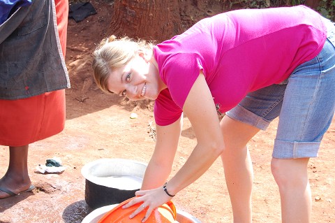 Washing dishes the Kenyan way. Yes Mom, they bend at the waist not the knees. ๐Ÿ™‚ I kept trying to get them to bend at the knees and they kept trying to get me to do it this way! Killer after a while! Thankfully my team was great at washing dishes so I didn’t have to do them too much with being sick.