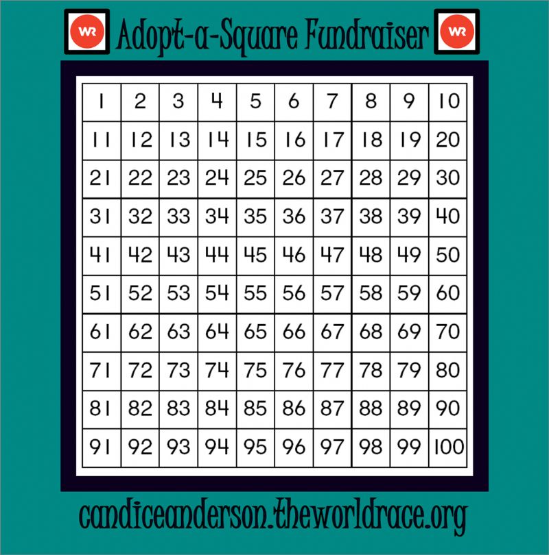 My first deadline of $3900 is due on the 25th of September. I have $2,605 remaining to raise. That gives us less than TWO weeks to reach this goal. I say “Us” because I need your help. Here’s what you can do. Adopt-a-square!
