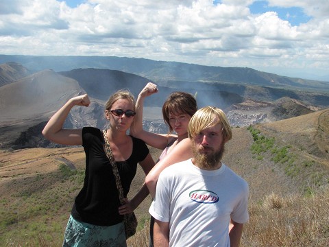 Yeah team Up!  Us three strong crazies posing at a volcano in Masay, Nicaraua.