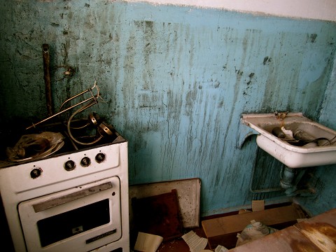 Mold and papers and spiders and dust an inch thick covered the entire apartment.