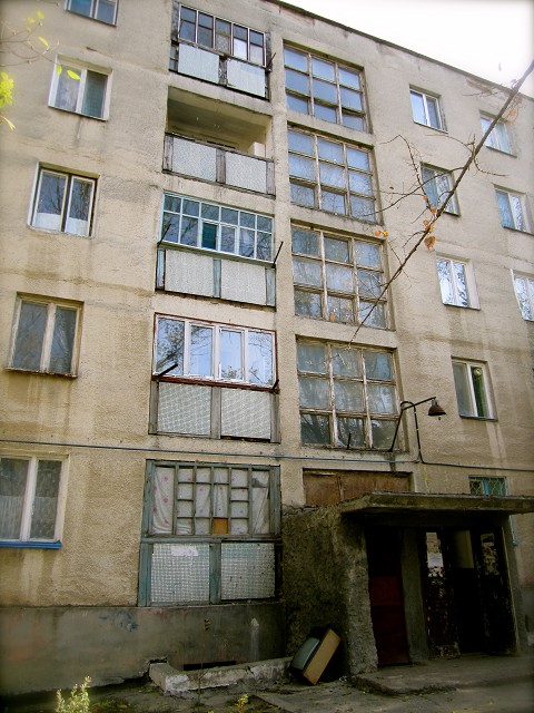 Or this morning, for example, we got up and walked over to this building. All of the Soviet buildings still stand and people live in the small, gray apartments. The lights in the hallways work…sometimes. Other times, the entire buildings are plunged in darkness and you have to feel your way around to find a door.