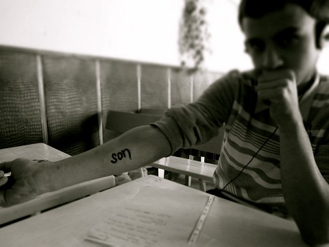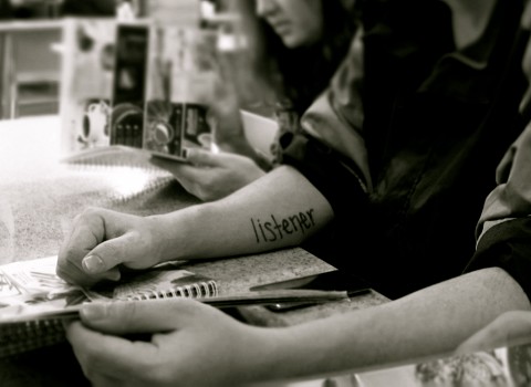 who we are all over the place — specifically on our physical bodies. We’ve written words that are true all over each other’s arms — in
