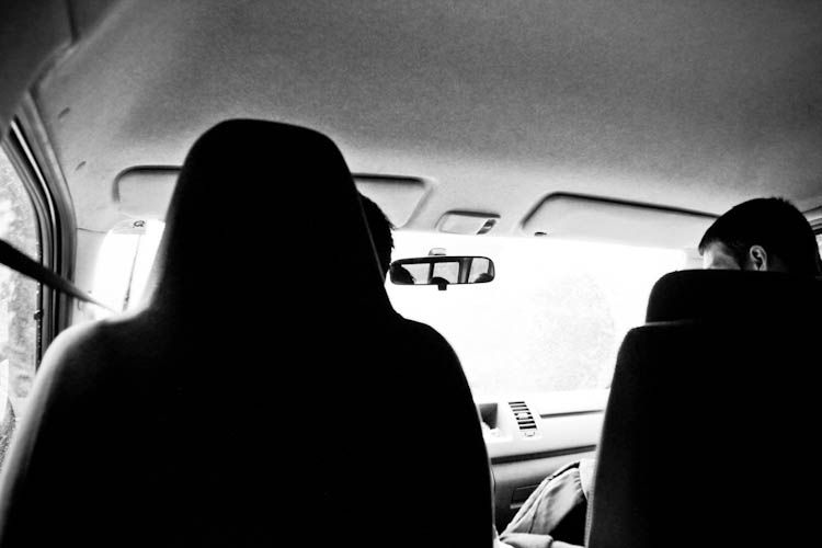 we are about a half hour away from our destination when traffic comes to a complete stop. it is 6:00pm and the world is already a cloudy dark blue. our driver is told that a part of the road broke or fell off. the earth had taken a big sip of rain and is muddy. a few squad mates jump off the van and take a look at the fallen road. we are later told that there was an accident and that it will be several hours till we move again.